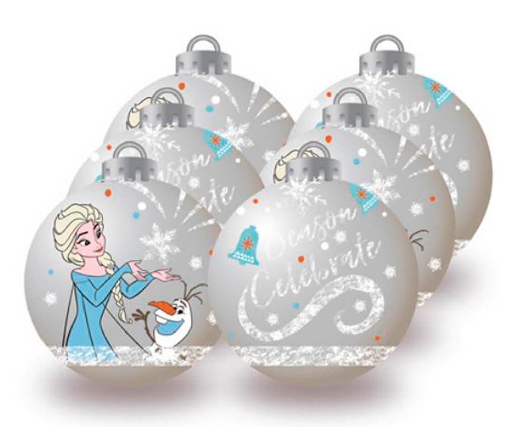 Frozen Palline Albero Natale 8 Cm Pack 6 Disney Argento to uroczy zestaw 6 ozdób choinkowych inspirowanych popularnym filmem animowanym Disneya „Kraina Lodu”. Każda ozdoba ma średnicę 8 cm i została wykonana z solidnego i trwałego materiału, co gwarantuje, że będą ozdabiać choinkę przez wiele sezonów świątecznych.