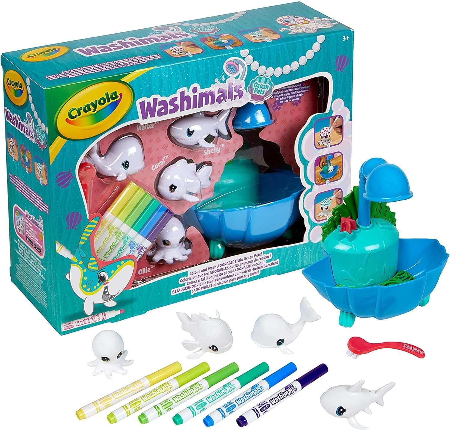 Laguna Washimals Ocean Pets to kreatywny zestaw, który zapewnia niekończącą się zabawę dla małych artystów. Zestaw zawiera 4 morskie zwierzątka do ozdabiania oraz 3 pisaki Washimals, które można użyć do stworzenia unikalnych wzorów i dekoracji. Dzięki specjalnemu tuszowi, który jest łatwy do zmycia wodą, dzieci mogą wielokrotnie zmieniać wygląd swoich zwierzątek, tworząc nowe i kolorowe projekty.