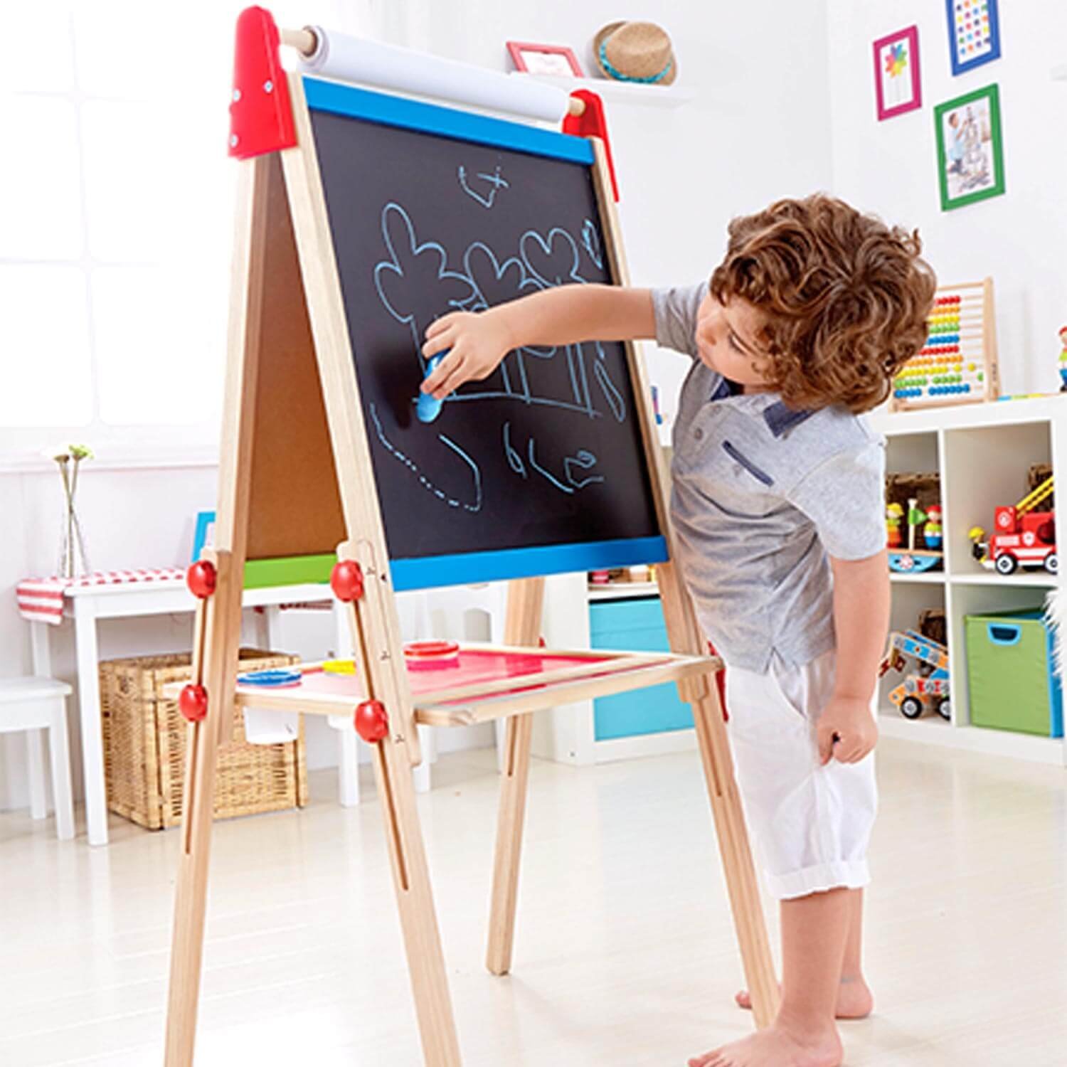 Lavagna In Legno Bambini Multiattivita Hape to kreatywna i edukacyjna zabawka, która zachęca dzieci do rozwijania swojej wyobraźni i umiejętności manualnych. Ta wielofunkcyjna tablica wykonana jest z wysokiej jakości drewna, co gwarantuje trwałość i bezpieczeństwo podczas zabawy. Dzięki różnorodnym akcesoriom, takim jak kredki, magnesy czy gumka do ścierania, dzieci mogą tworzyć, rysować, pisać oraz uczyć się przez zabawę.