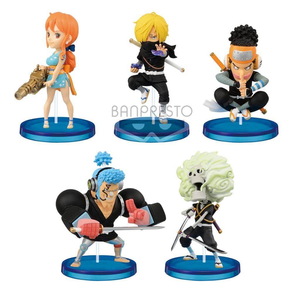 One Piece WCF Chibi PVC Statues to urocza kolekcja figurek przedstawiających postacie z kultowego anime „One Piece” w stylu chibi. Statuetki mają około 7 cm wysokości i zostały wydane w kwietniu 2021 roku w ramach drugiej serii Wanokuni Style. Każda z figurek jest starannie wykonana z PVC, co zapewnia wysoką jakość i trwałość produktu.