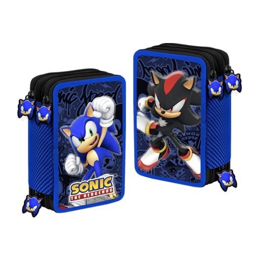 Sonic Astuccio Triplo 3 Zip Scuola 2022 2023 Completo Di Colori