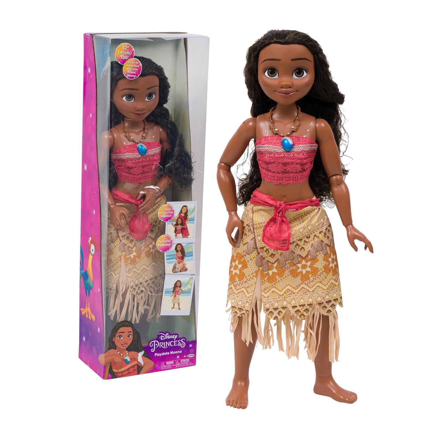 Vaiana Oceania Disney Princess Doll to lalka o imponującym rozmiarze 80 cm, inspirowana popularną postacią z filmu Disneya „Vaiana: Skarb Oceanu”. Ta urocza lalka zapewni niezliczoną ilość godzin kreatywnej zabawy dla małych fanek bajek Disneya. Dzięki starannym detalom i wysokiej jakości wykonaniu, lalka Vaiany zachwyca nie tylko wyglądem, ale także wyrazistymi rysami twarzy, odzwierciedlającymi charakterystyczny uśmiech bohaterki. Jej długie, ciemne włosy oraz kolorowe stroje nawiązują do kultury i tradycji Oceania, co dodaje autentyczności postaci.